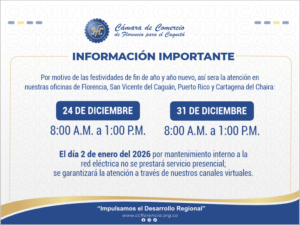 - Horario de Atención en Cámara de Comercio de Florencia para Fin de Año 2025